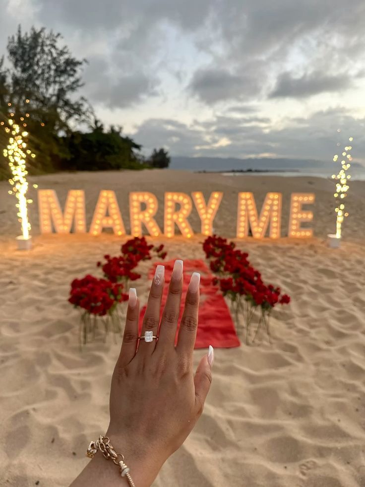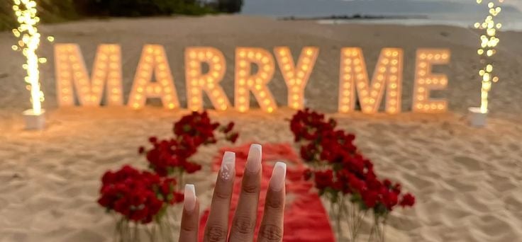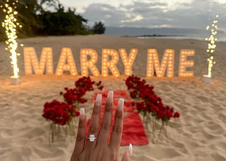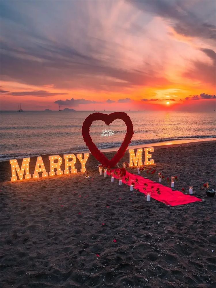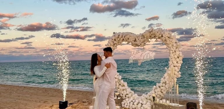 We couldn’t have imagined a more magical proposal! The beach setup was stunning — the heart of roses, the glowing ‘Will you marry me’ sign, and the gentle sound of the ocean made the moment unforgettable. Thank you for creating this dream experience for us!