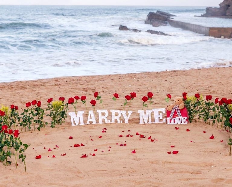 Whether you’re dreaming of an intimate beach proposal, a dramatic rose-filled aisle, or a luxury setup under the sunset, we’re here to bring your vision to life.