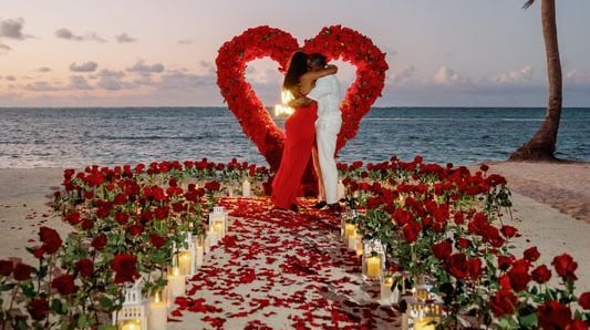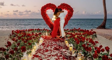 A glowing heart, a path of roses, and warm candlelight create a scene that feels straight out of a movie — emotional, elegant, and absolutely beautiful.