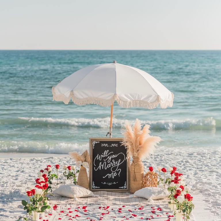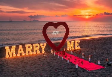 From romantic beach setups to elegant décor details, every element is created to make your proposal effortless, breathtaking, and unforgettable.