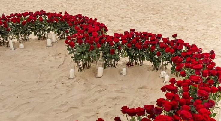 - ~150 roses along the aisle and around the heart