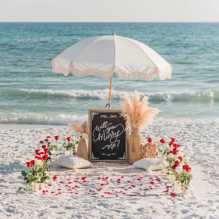 From romantic beach setups to elegant décor details, every element is created to make your proposal effortless, breathtaking, and unforgettable.